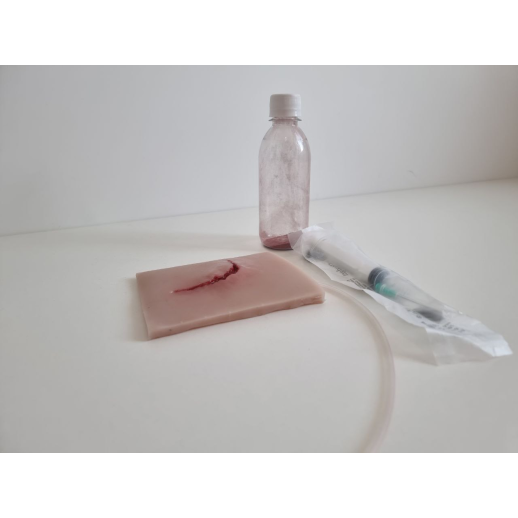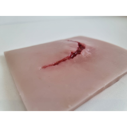 Тренажёр для остановки кровотечения и наложения швов выполнен из высококачественного высокореалистичного силикона и раскрашен художниками вручную. Ткани мягкие и подразумеваю многократное наложение швов. (не менее 50 раз на 1 модуле)